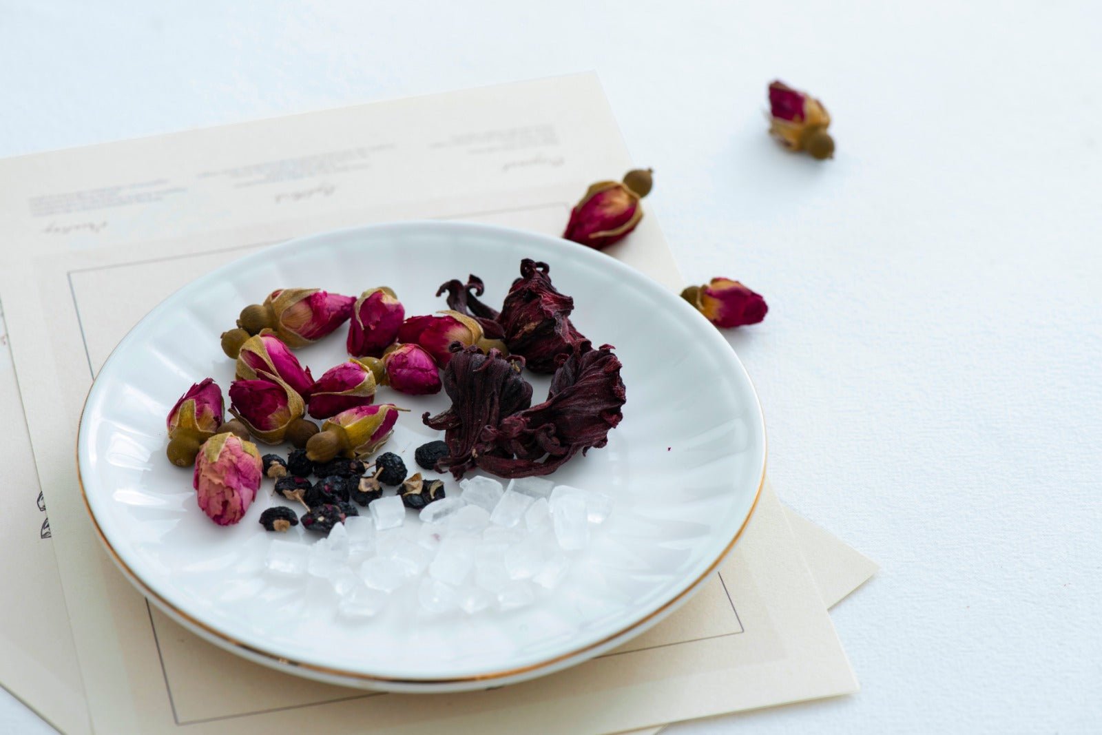 Ingredients: Roselle, Rose, Rock Sugar, Black Goji